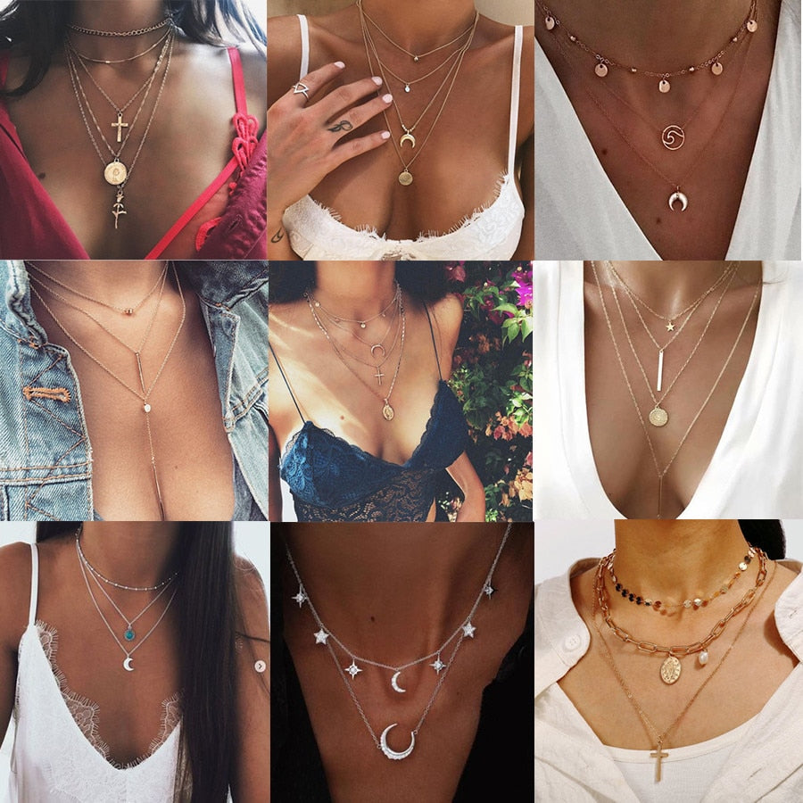 Bohemian Star Moon Cross Heart Pendant Necklace For Women Gold Multi Layer Long Necklaces 2019 Fashion Jewelry Christmas Gift